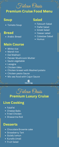 It was the great trip with Falcon Oasis. Food was yummiest and all services were awesme. Staff was very friendly and cooprative. I must recomend you all take a curise with Falcon Oasis. Best trip with them. Shows was awesome.
